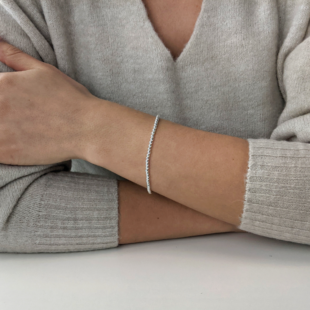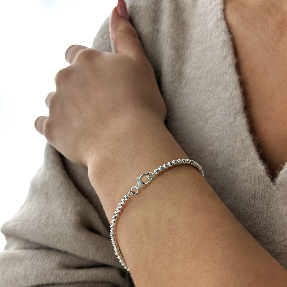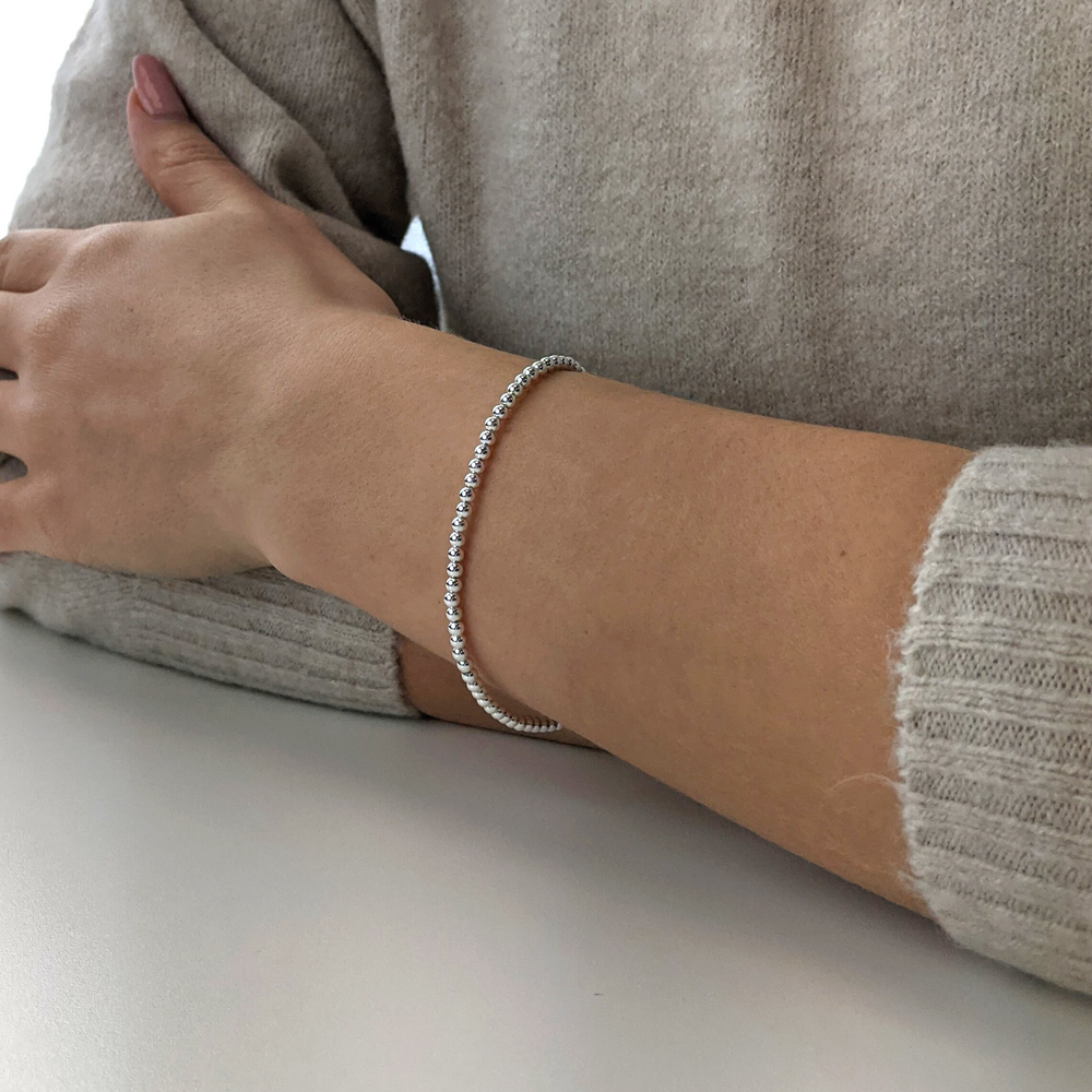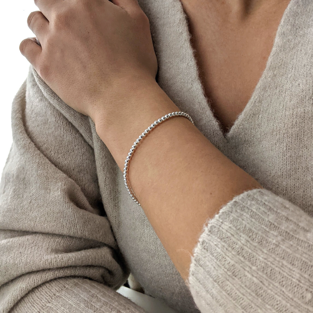 Sterling Silver 3mm Small Ball Bead Beaded Stacking Bracelet