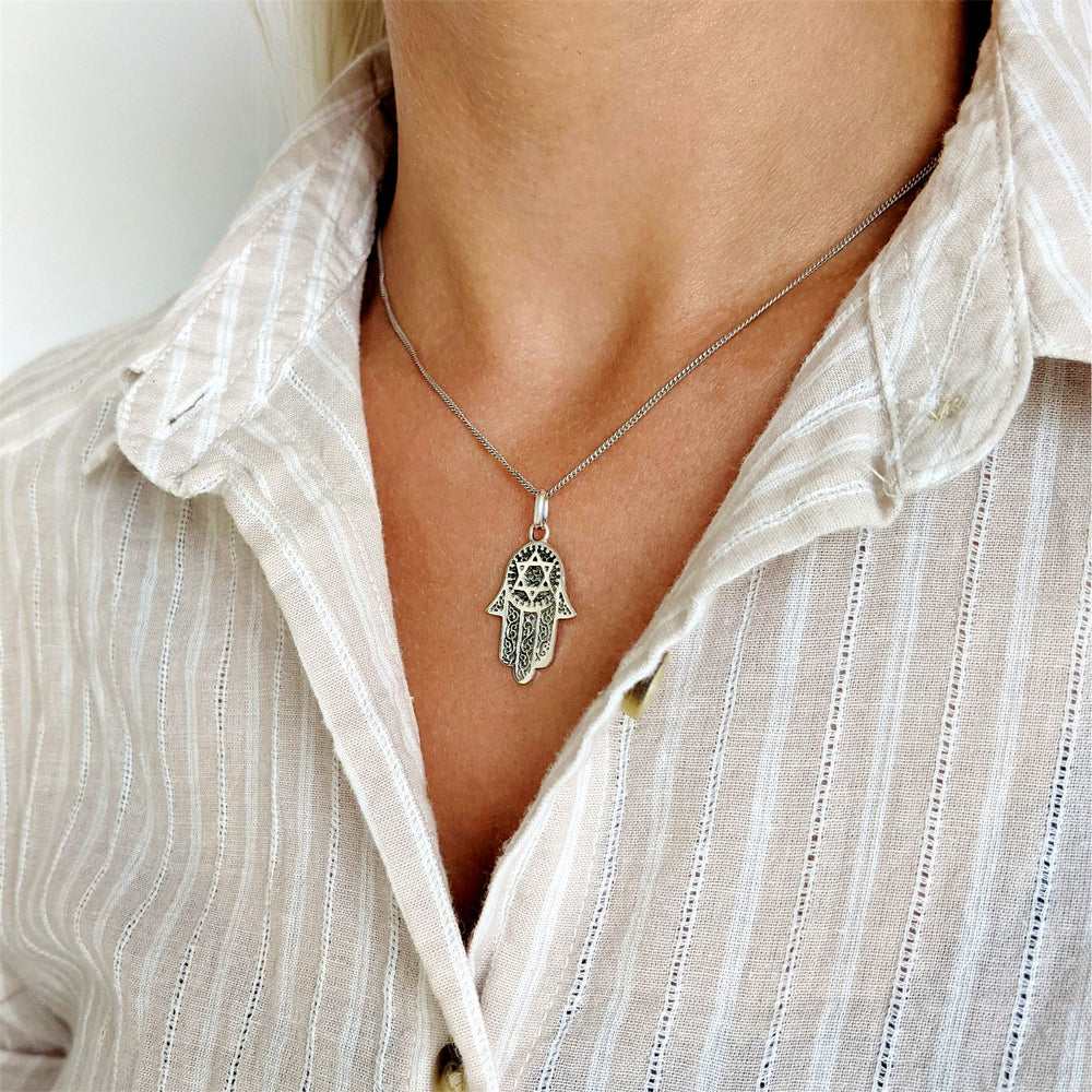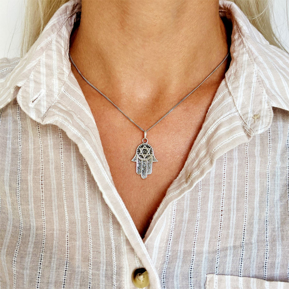 • 925 sterling silver Hamsa Hand pendant necklace.