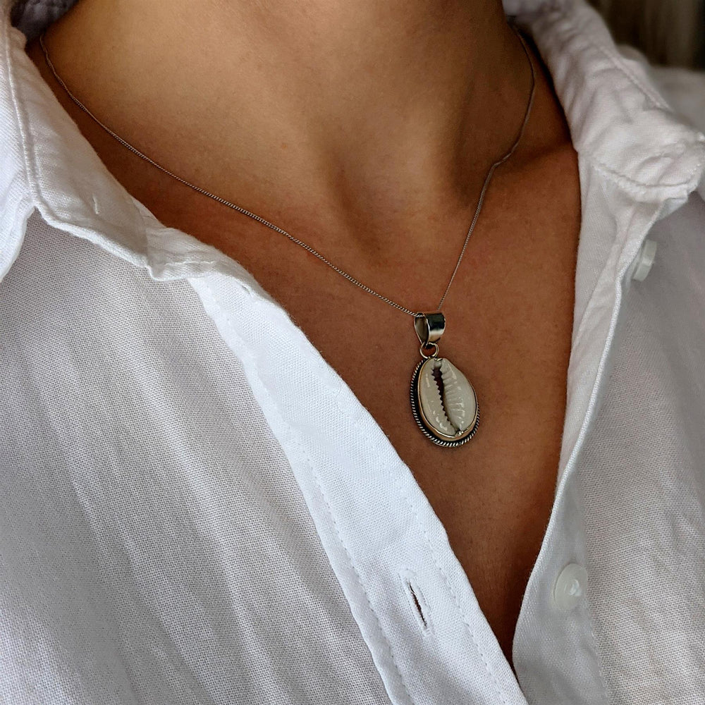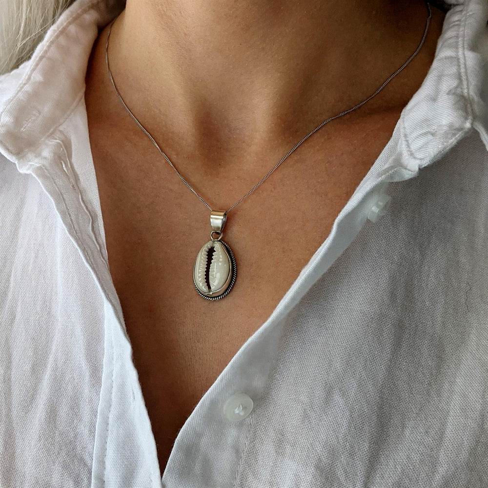 - Made of 925 sterling silver and adorned with genuine cowrie shell.