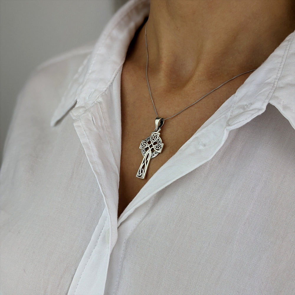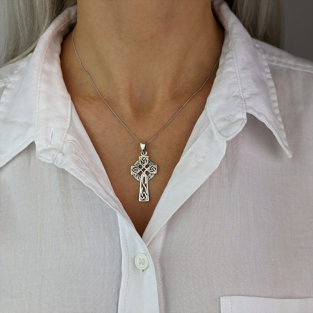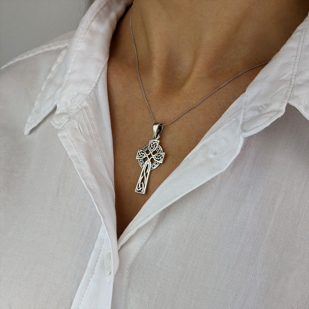 Make a statement with this striking 925 sterling silver large Celtic cross necklace. Expertly crafted with intricate knotwork, this solid silver pendant blends timeless symbolism with modern elegance, adding a bold, meaningful touch to any outfit.